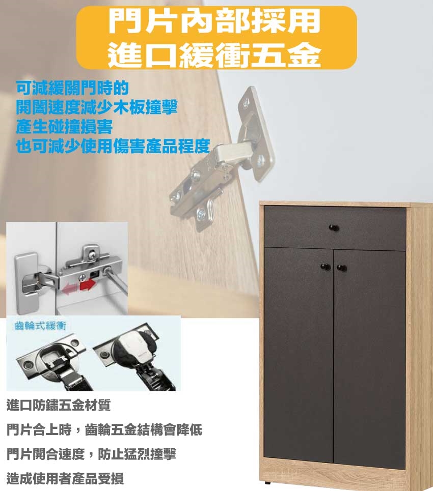 材質:防蛀木心板+五金滑軌結構+防刮耐磨底座+防夾手緩衝門片五金