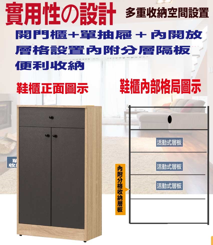 【綠家居】麥莉2尺二門單抽鞋櫃