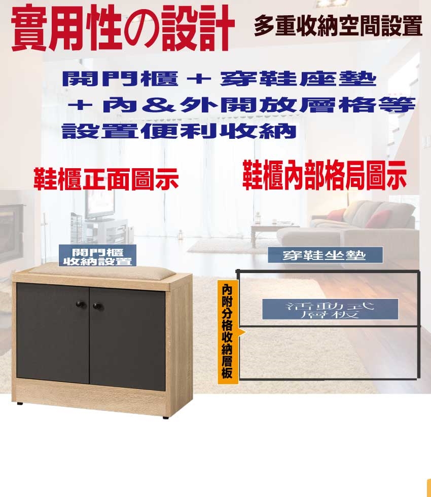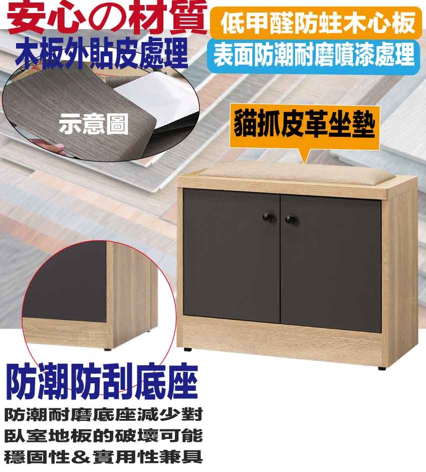 - ◆產品名稱:【綠家居】麥莉2.6尺二門貓抓皮座鞋櫃