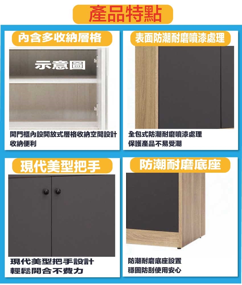 採用防蛀木心板++貓抓皮革坐墊+高回彈力泡棉+防刮耐磨底座+防夾手緩衝門片五金等安心材質製造