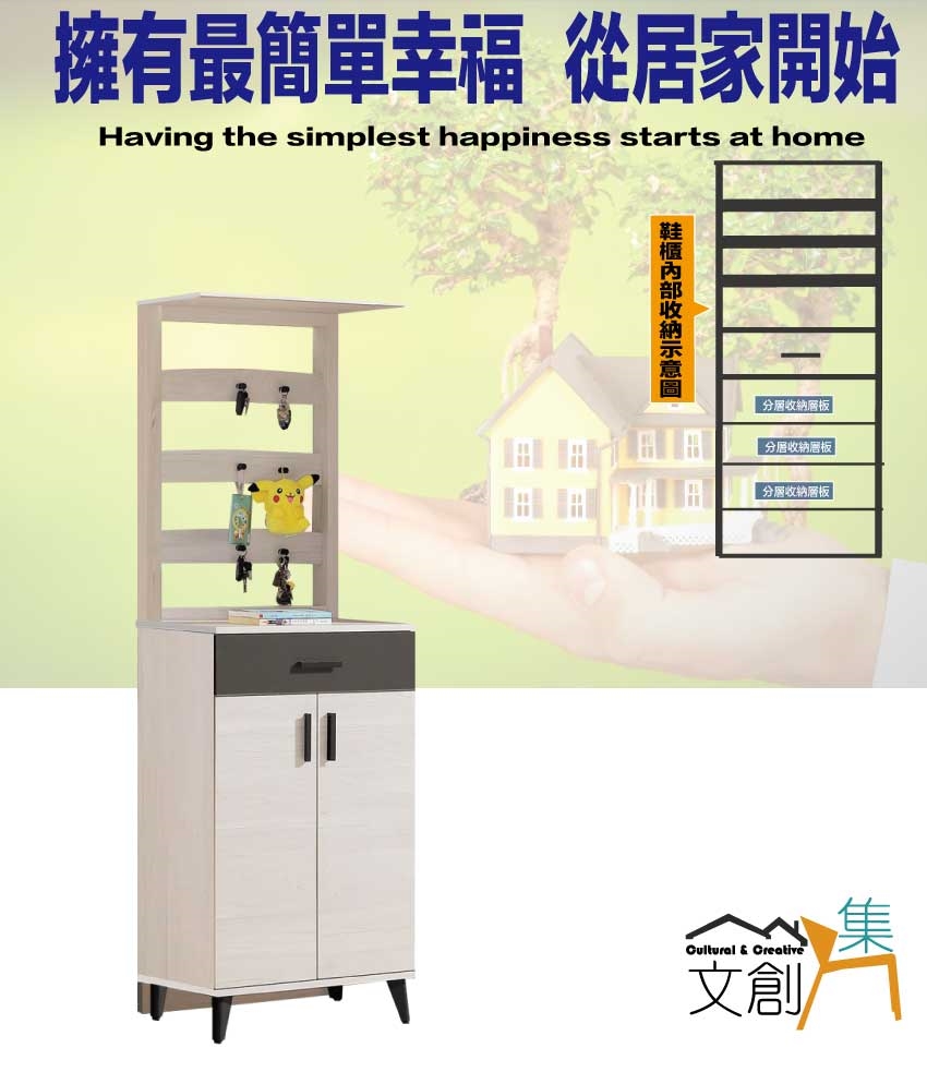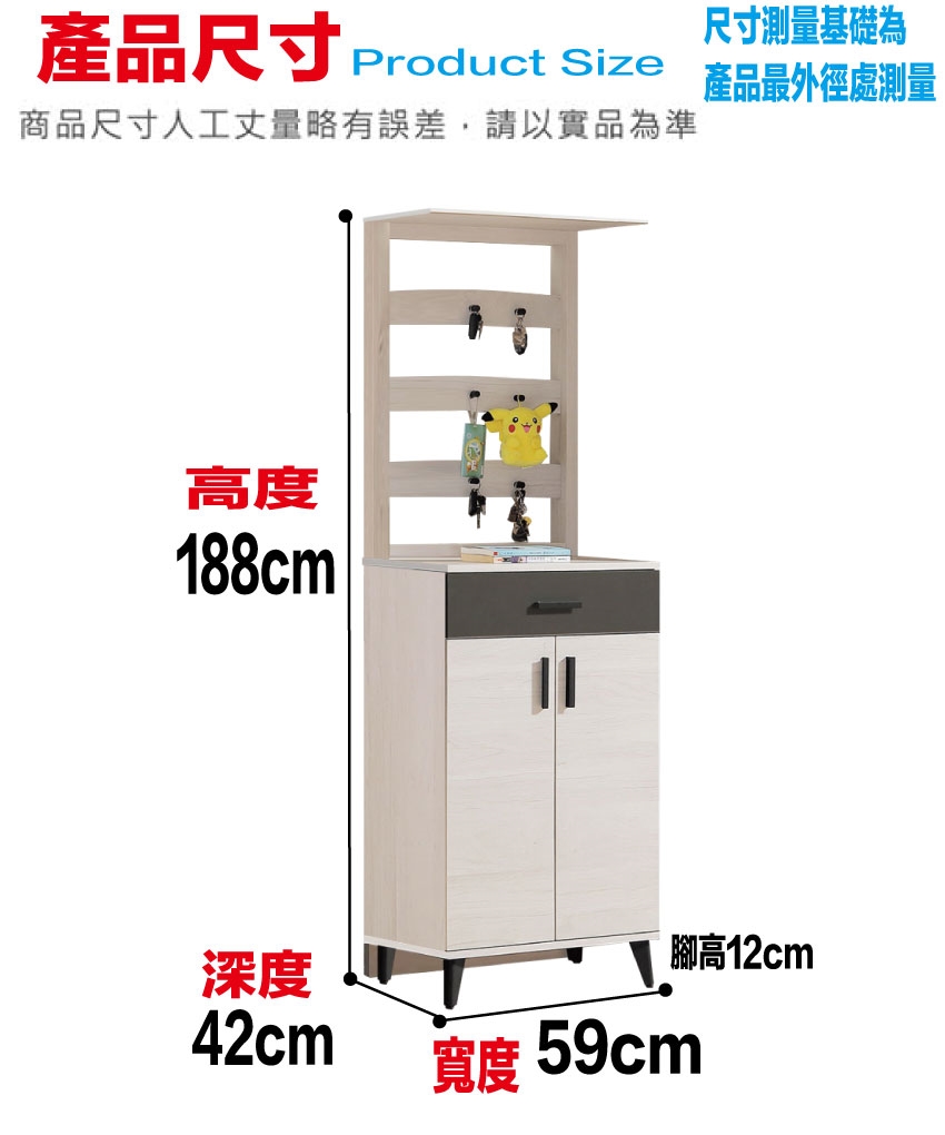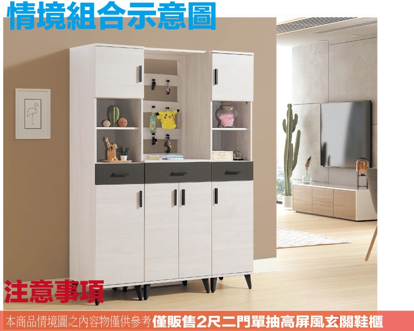 - ◆產品名稱:【綠家居】麥倫2尺二門單抽高屏風玄關鞋櫃