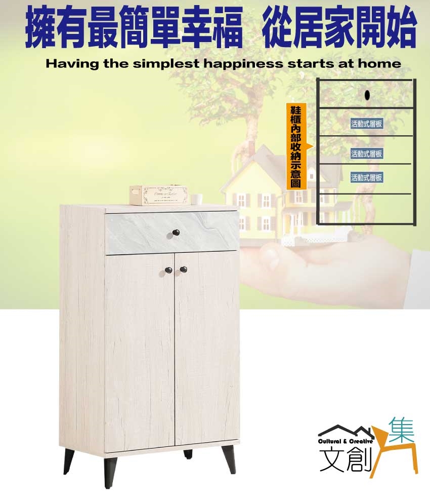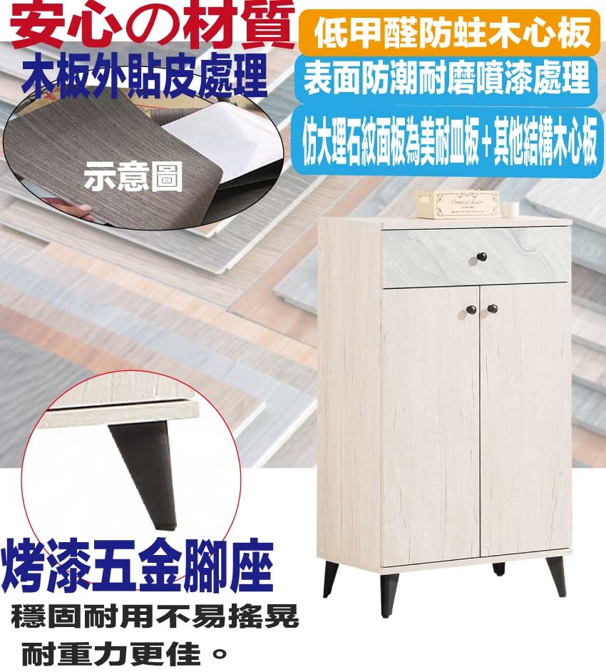 【綠家居】高利雙色2尺二門單抽鞋櫃