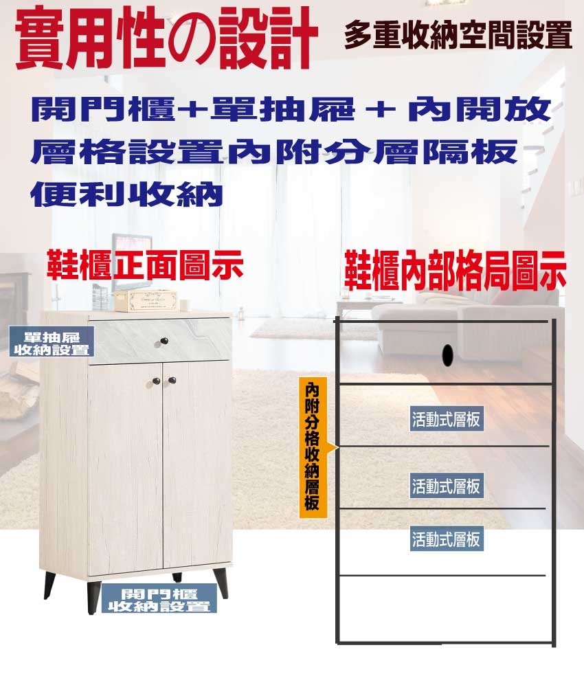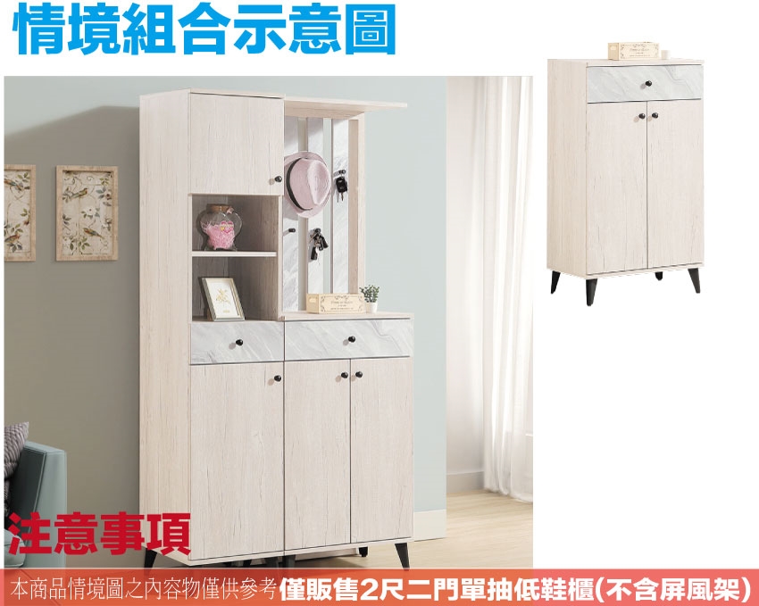 - ◆產品名稱:【綠家居】高利雙色2尺二門單抽鞋櫃