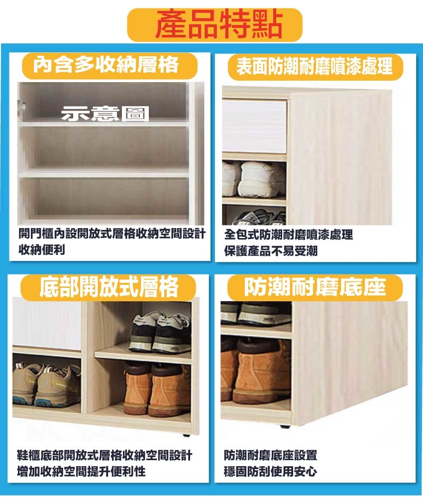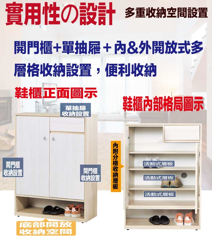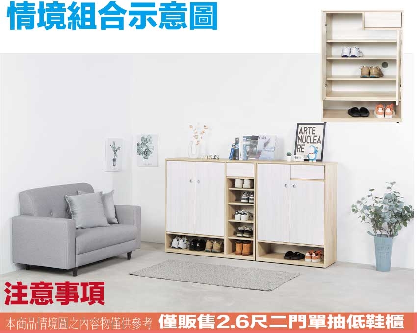 - ◆產品名稱:【綠家居】 高格雙色2.6尺二門單抽鞋櫃