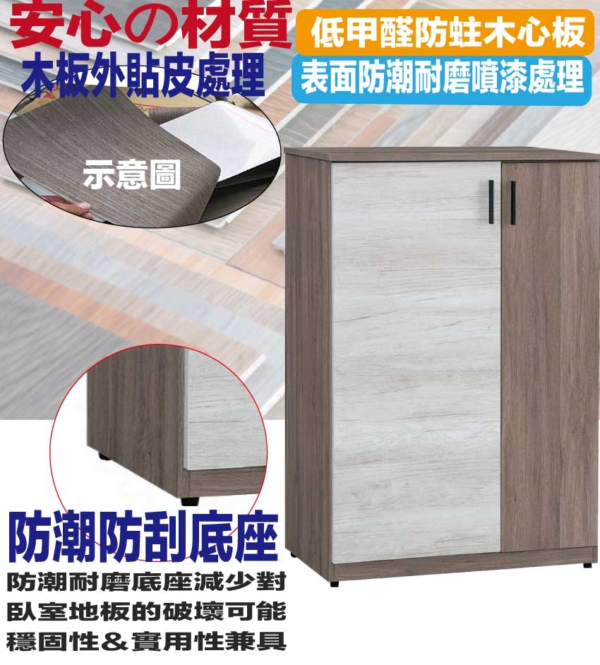 ★偏遠地區需額外加收運費,下標請先問與答詢問★ ★下訂前注意 由於商品流動較快,下訂前請先詢問是否有貨在下訂喔~★ 【綠家居】卡格雙色2.7尺二門鞋櫃 木紋雙色系+安心材質製造,使用放心+搭配居家更便利,採用防蛀木心板+防潮耐磨底座+防夾手緩衝門片五金等安心材質製造 ,外層採用防潮耐磨噴漆處理搭配採用開門櫃+內開放層格等收納空間設計,全由專人配送到家,專業安心服務,替你省下更多時間!