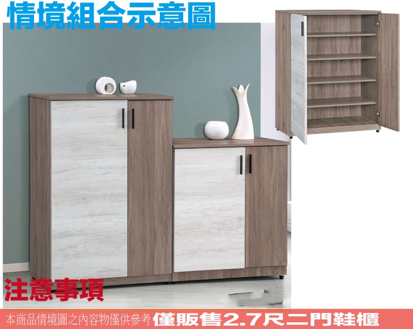 【綠家居】卡格雙色2.7尺二門鞋櫃