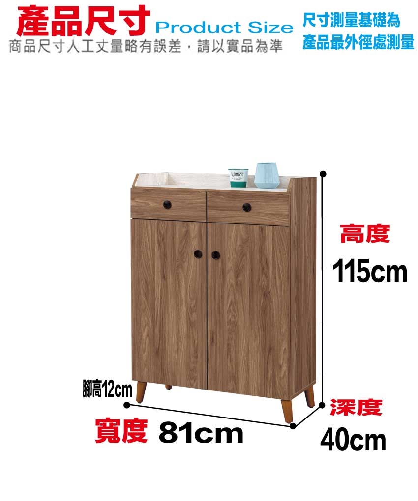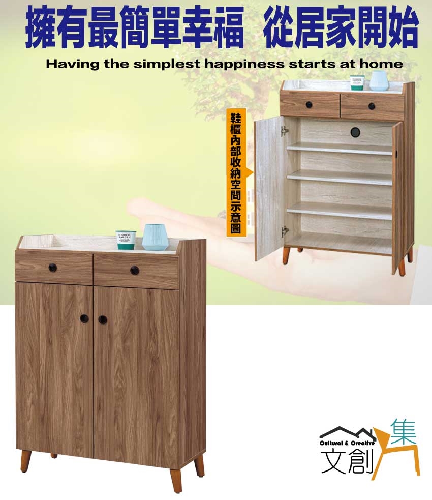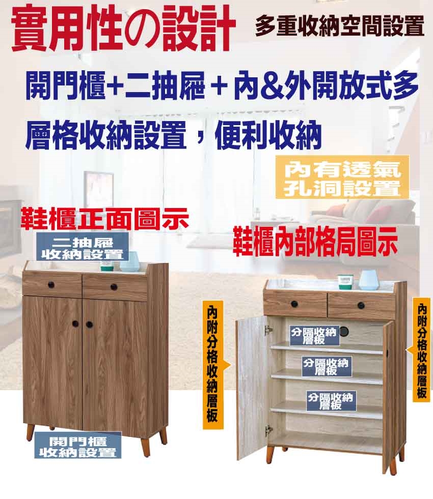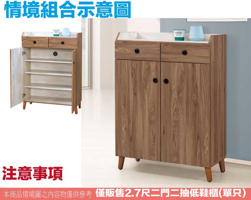 - ◆產品名稱:【綠家居】卡格淺柚2.7尺二門二抽鞋櫃