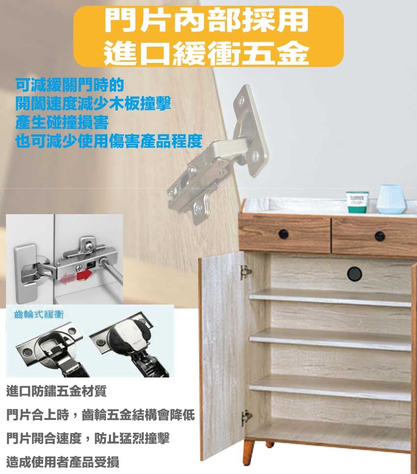 材質:防蛀木心板+防刮實木腳座+防夾手緩衝五金