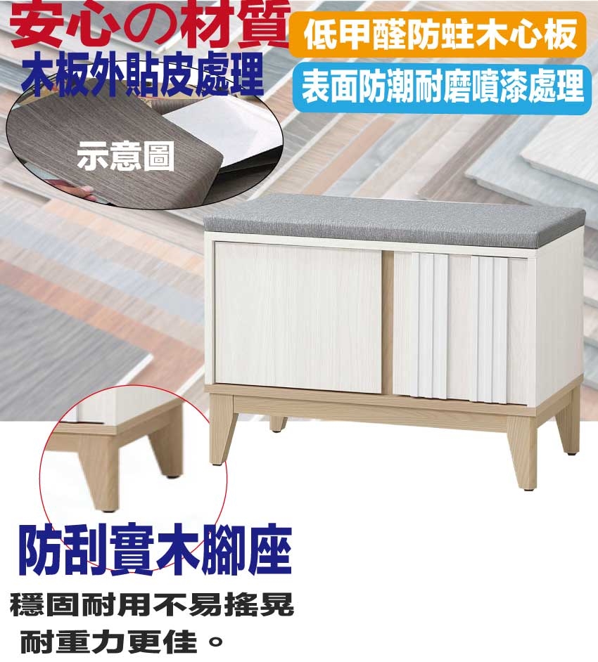 ★偏遠地區需額外加收運費,下標請先問與答詢問★ ★下訂前注意 由於商品流動較快,下訂前請先詢問是否有貨在下訂喔~★ 【綠家居】亞畢克2.3尺二門貓抓皮墊座鞋櫃 現代雙色系+安心材質製造,使用放心+搭配居家更便利,採用防蛀木心板+防刮實木腳座+防夾手緩衝門片五金+耐刮貓抓皮革+高回彈泡棉等安心材質製造 ,外層採用防潮耐磨噴漆處理搭配採用穿鞋坐墊+開門櫃+內開放層格等收納空間設計,全由專人配送到家,專業安心服務,替你省下更多時間!