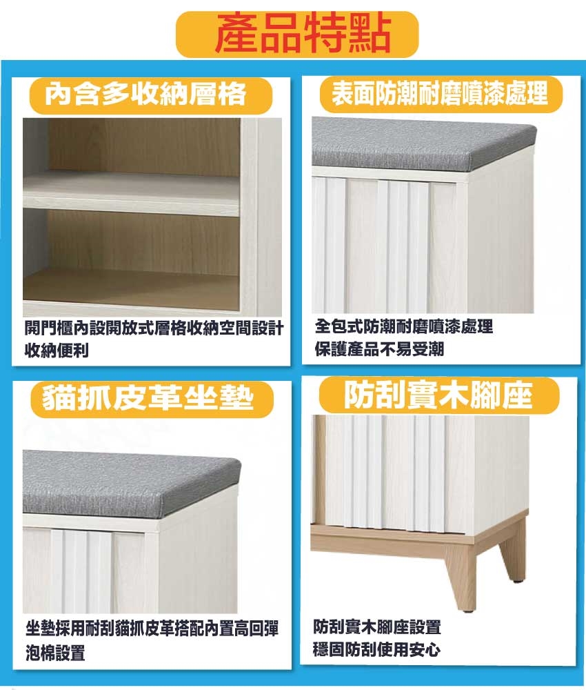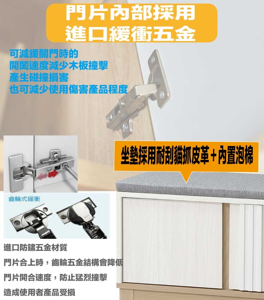材質:防蛀木心板+防刮實木腳座+防夾手緩衝門片五金+耐刮貓抓皮革+高回彈泡棉