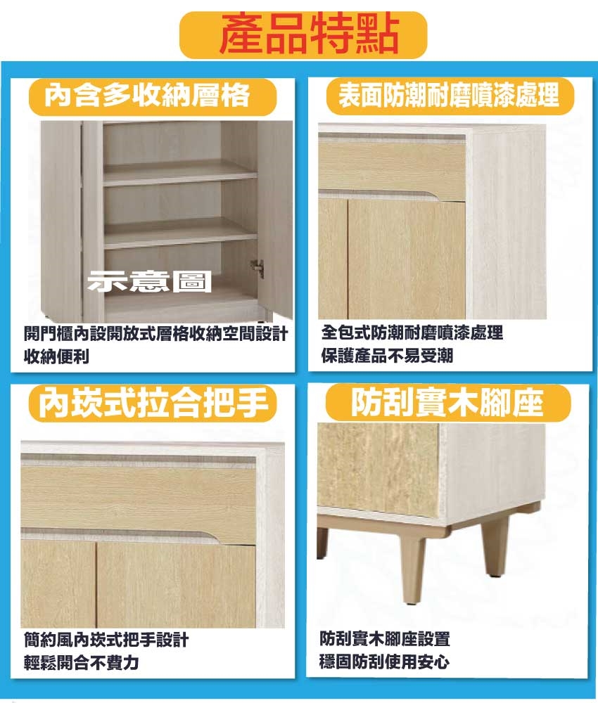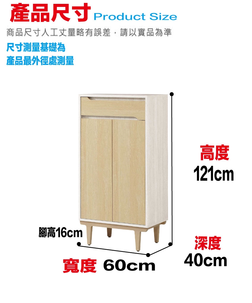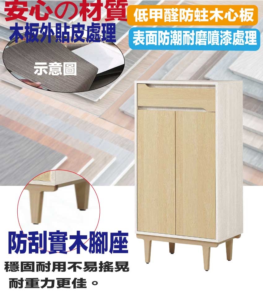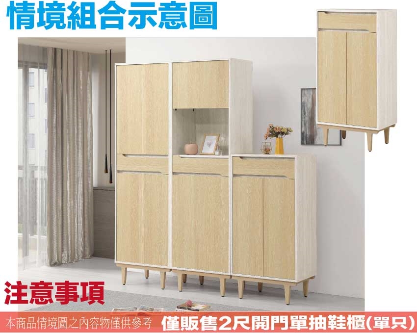 - ◆產品名稱:【綠家居】菲可雙色2尺開門單抽鞋櫃