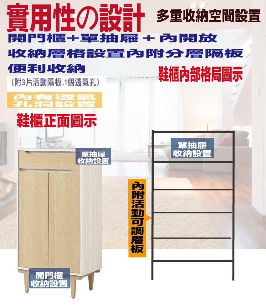 【綠家居】菲可雙色2尺開門單抽鞋櫃