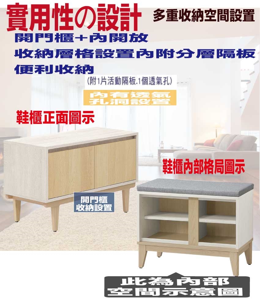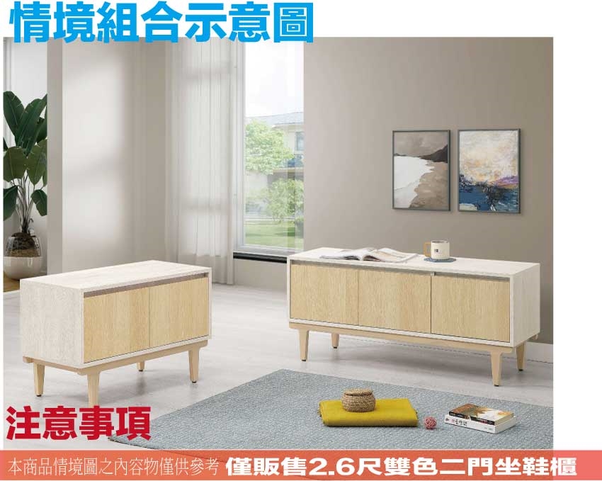 - ◆產品名稱:【綠家居】菲斯可雙色2.6尺開門座鞋櫃