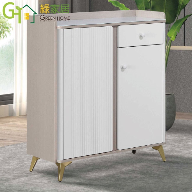 【綠家居】喬利雙色2.7尺玻璃二門單抽鞋櫃