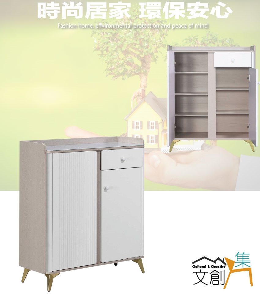 - ◆產品名稱:【綠家居】喬利雙色2.7尺玻璃二門單抽鞋櫃