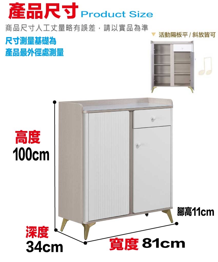 尺寸:(寬)80x(深)34x(高)100/公分