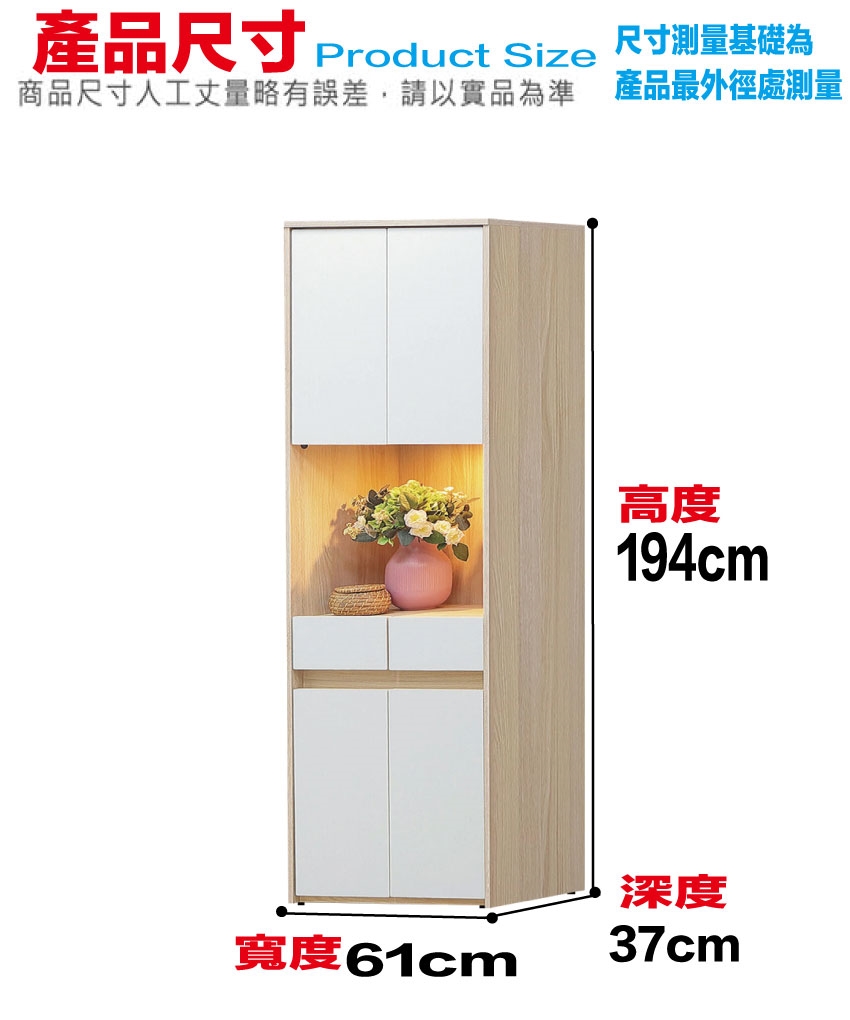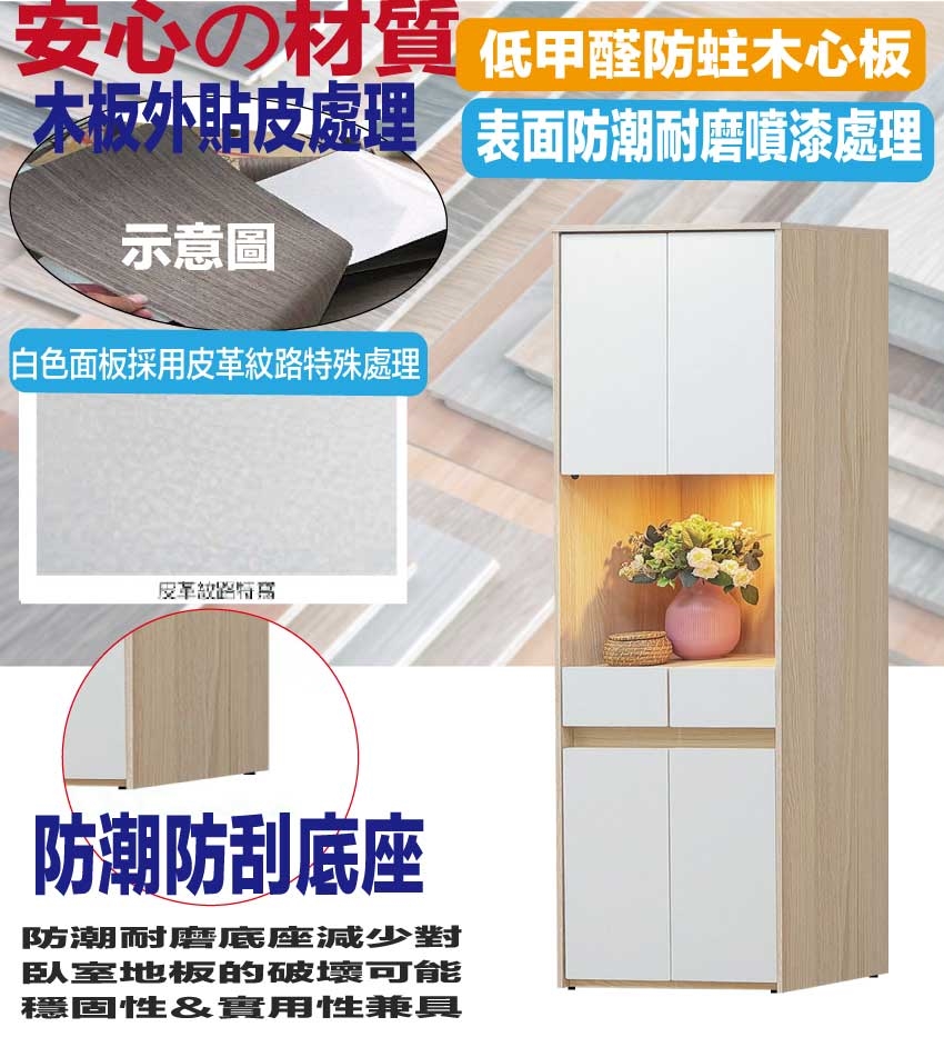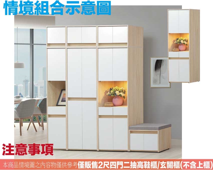 - ◆產品名稱:【綠家居】卡魯斯2尺二抽四門高玄關鞋櫃(附LED燈)