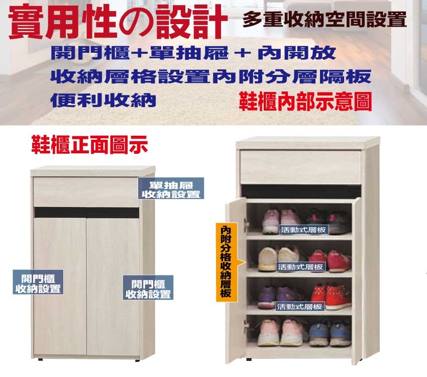 - ◆產品名稱:【綠家居】達斯2尺單抽二門鞋櫃