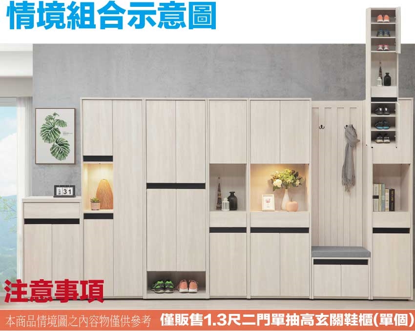 - ◆產品名稱:【綠家居】達斯1.3尺單抽二門高玄關鞋櫃