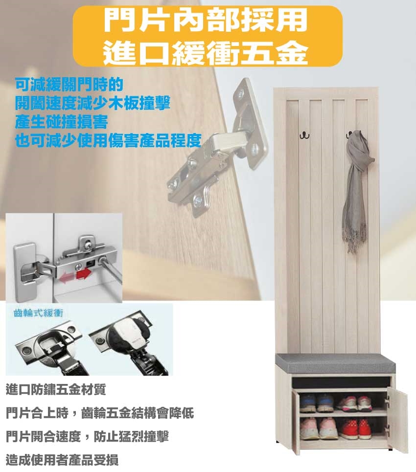 材質:防蛀木心板+防潮耐磨底座+防夾手緩衝門片五金