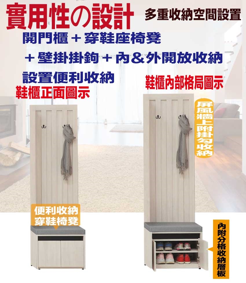 - ◆產品名稱:【綠家居】達斯1.9尺二門高玄關屏風座鞋櫃