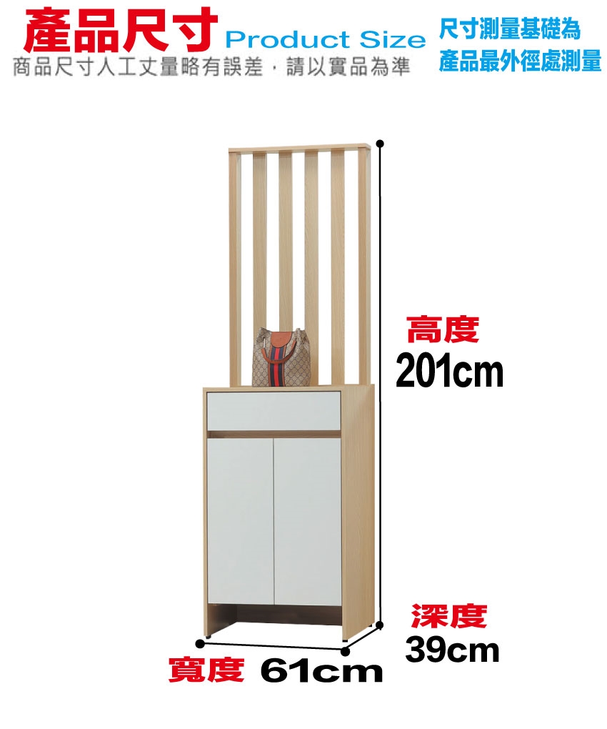 - ◆產品名稱:【綠家居】美斯2尺二門單抽高玄關屏風鞋櫃(二色可選)