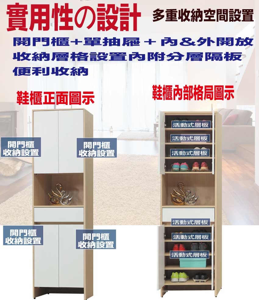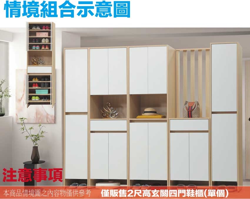 - ◆產品名稱:【綠家居】美斯2尺四門單抽高玄關鞋櫃(二色可選)