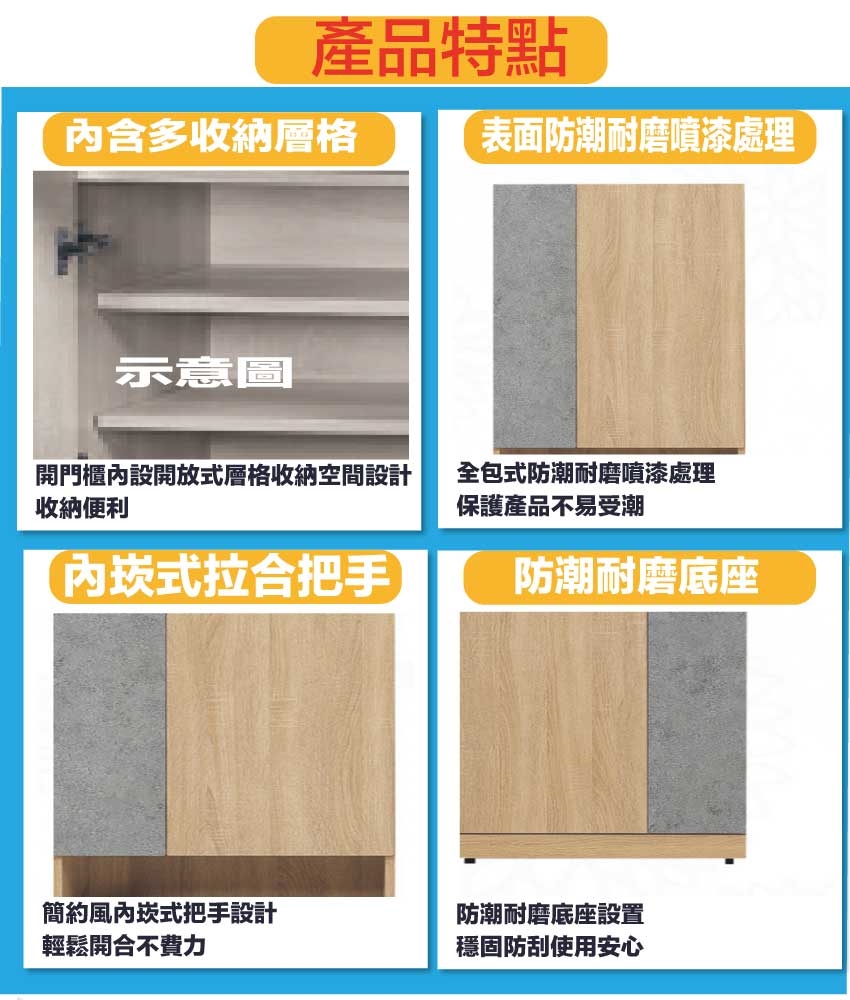 搭配採用開門櫃+內&外開放式層格等收納空間設計