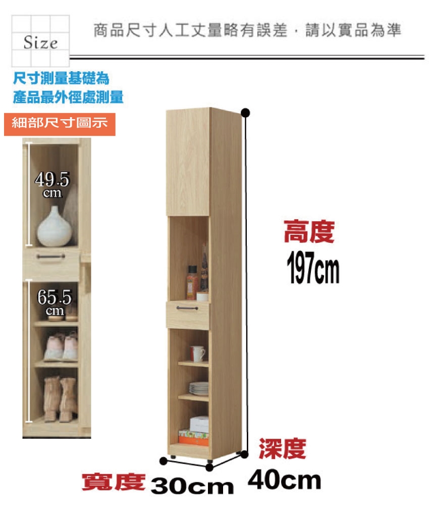 - 尺寸:(寬)30x(深)40x(高)197/公分