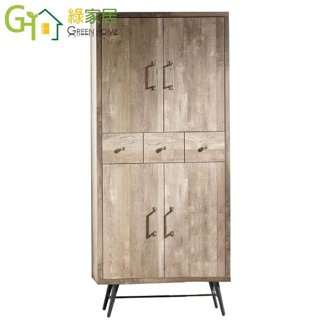 【綠家居】華爾茲 工業風2.7尺木紋四門高鞋櫃/玄關櫃