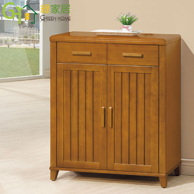【綠家居】薩托 時尚2.8尺實木二門鞋櫃/玄關櫃 優雅外觀造型設計,整體材質採用防蛀木心板+檜木實木+鋼珠滑軌結構+優利坦抗磨三層全包式塗裝處理等設計 ,防止受潮,增加支撐力,堅固不會塌陷,採用二抽屜+開放式層格+二門櫃等收納空間設計,高雅的紋路,營造隨性時尚感,清潔容易不麻煩。全由專人配送到家,專業安心服務,替你省下更多時間!