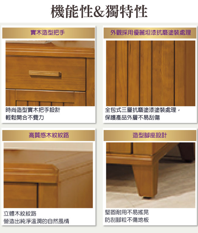 檜木實木+防蛀木心板等材質,結構牢固耐用,也不用擔心蟲蛀的煩惱,使用放心