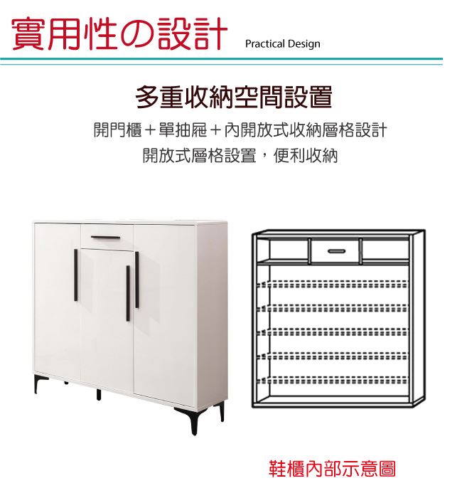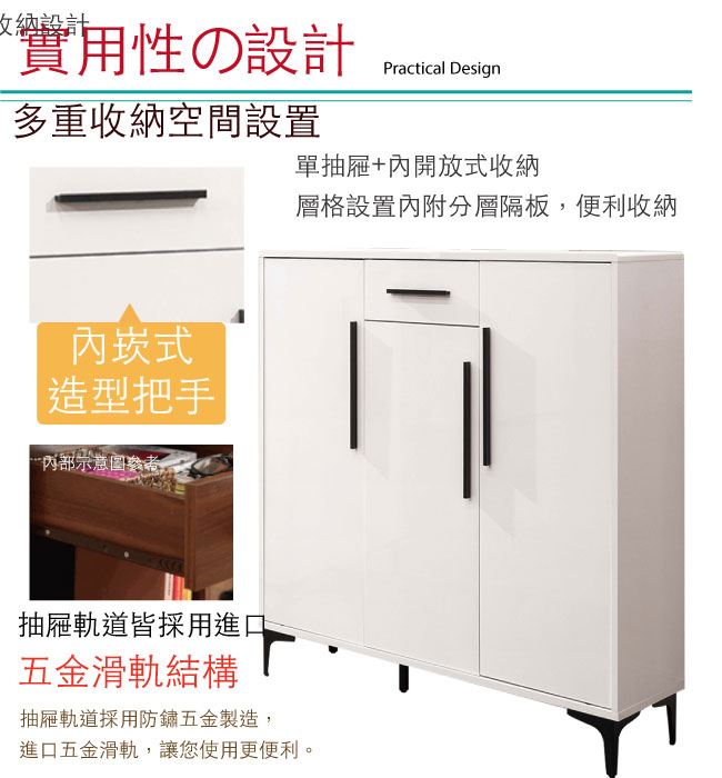【綠家居】聖安 時尚4尺三門單抽鞋櫃/玄關櫃(二色可選)