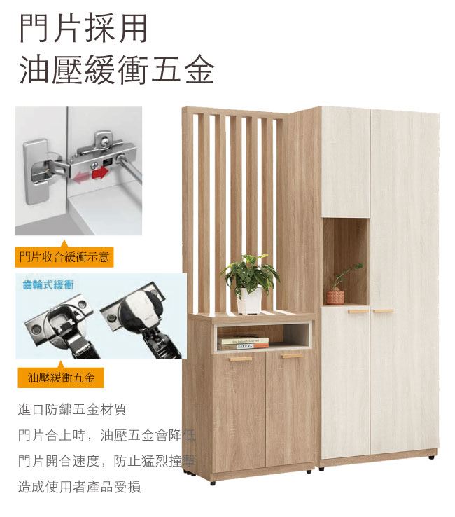 - 木紋雙色系+防夾手緩衝五金