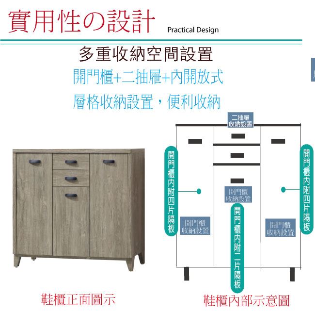【綠家居】布法3.9尺三門二抽鞋櫃