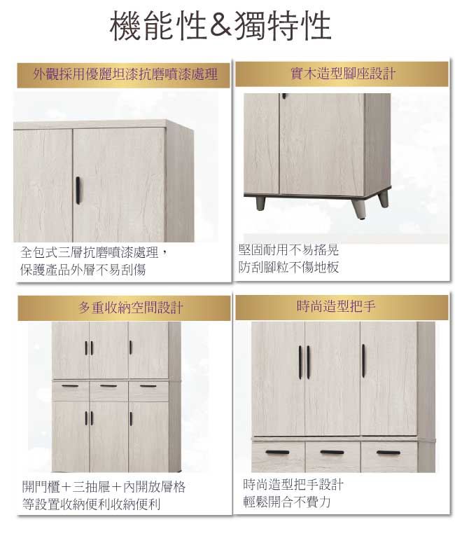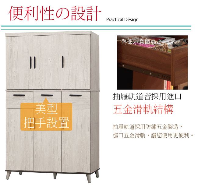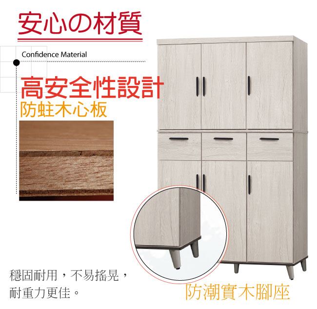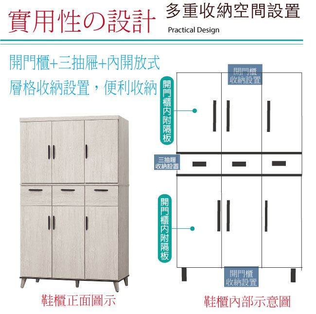 - ◆產品名稱:【綠家居】華安4尺六門三抽高鞋櫃