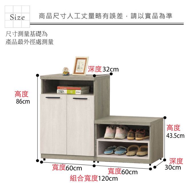 材質 | ◆產品名稱:【綠家居】夏亞雙色4尺多功能玄關櫃組合 尺寸:(寬)120x(深)32(高)86/公分 ◆材質: 材質:防蛀木心板+防刮耐磨腳座+防夾手緩衝門片五金 噴漆:防潮耐磨噴漆處理