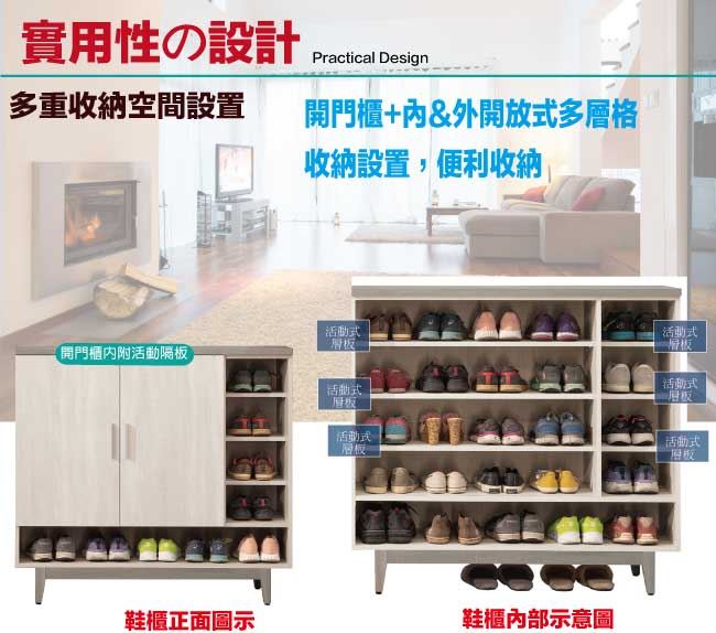 【綠家居】芙娜雙色4尺雙門半開放鞋櫃
