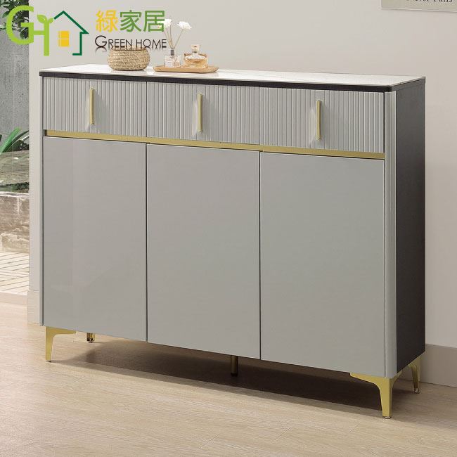 【綠家居】奧布蘭雙色4尺三門三抽岩板鞋櫃