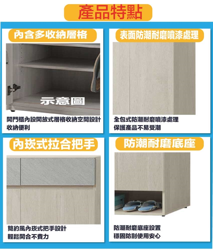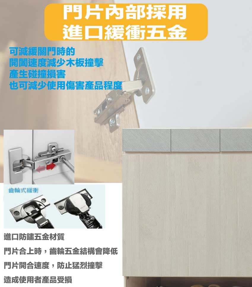 材質:防蛀木心板+防夾手緩衝五金+防潮耐磨底座+五金滑軌結構