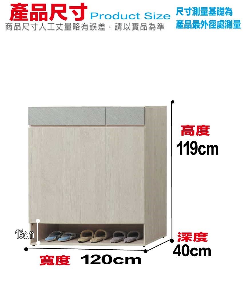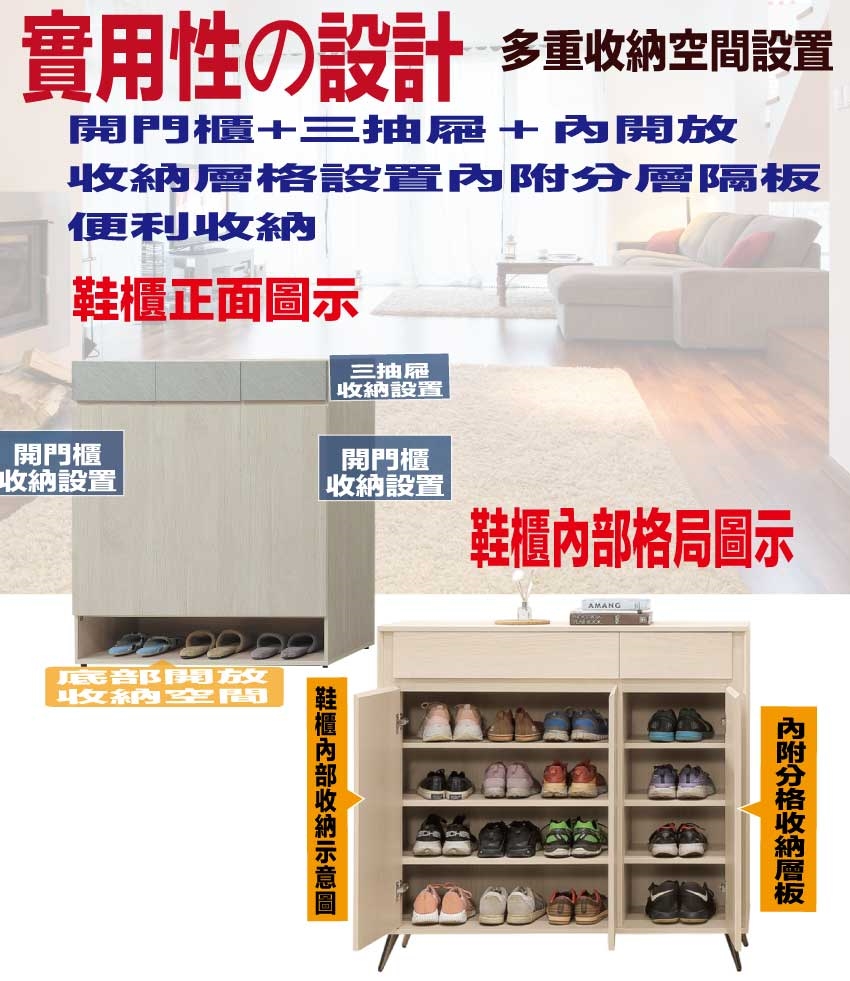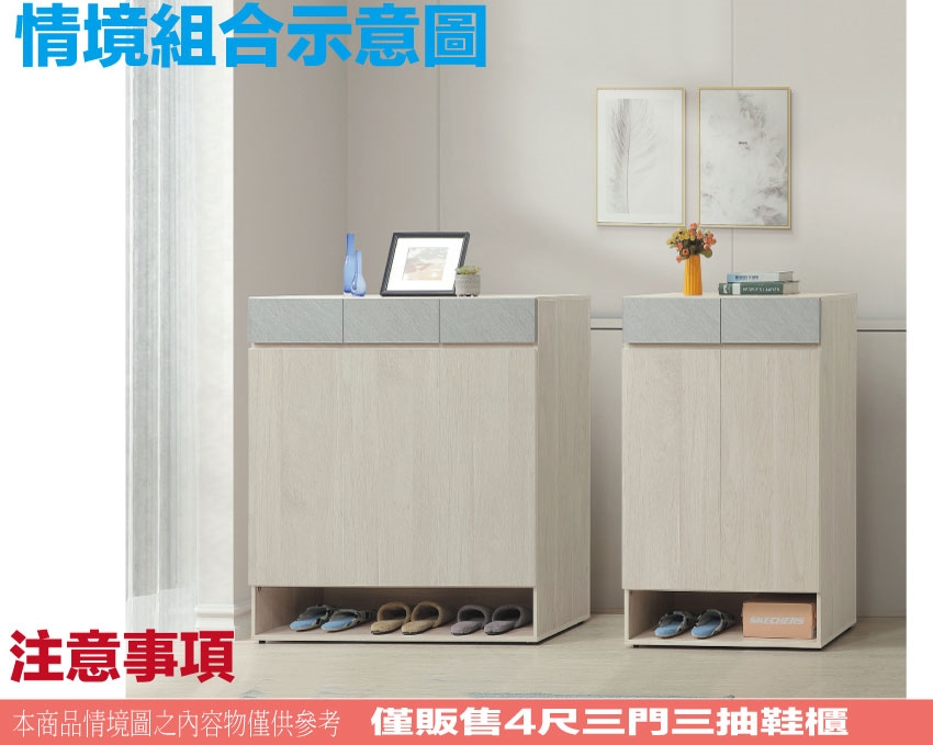 - ◆產品名稱:【綠家居】莫森4尺三門三抽鞋櫃