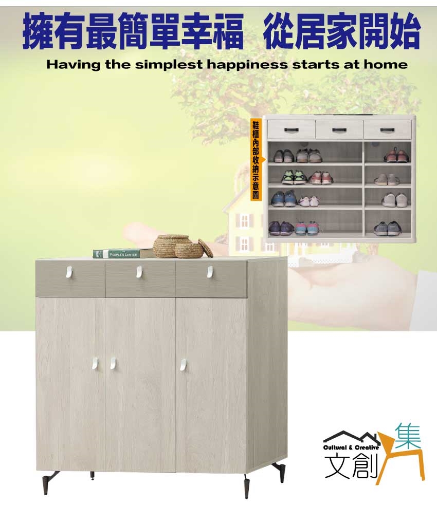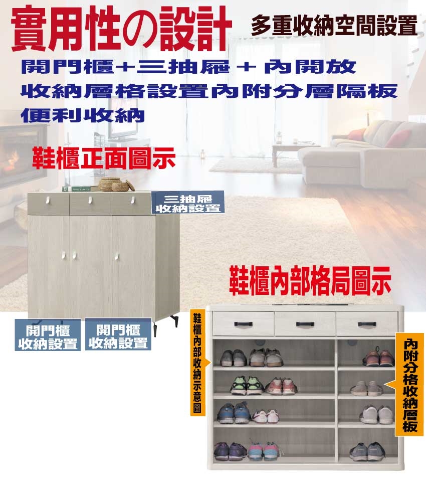 【綠家居】蒂斯4尺三門三抽鞋櫃