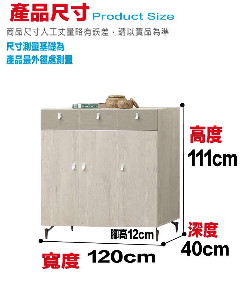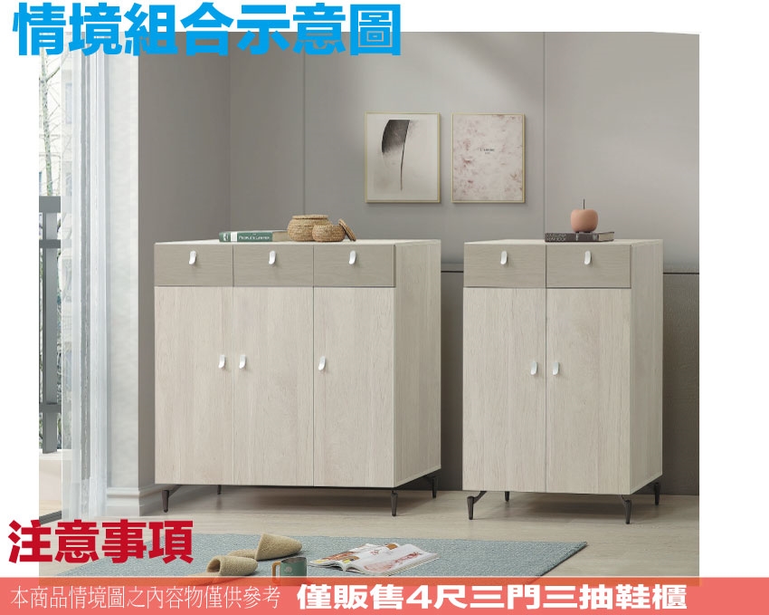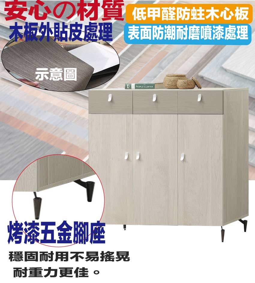 - ◆產品名稱:【綠家居】蒂斯4尺三門三抽鞋櫃