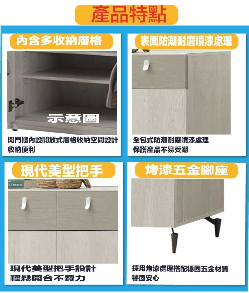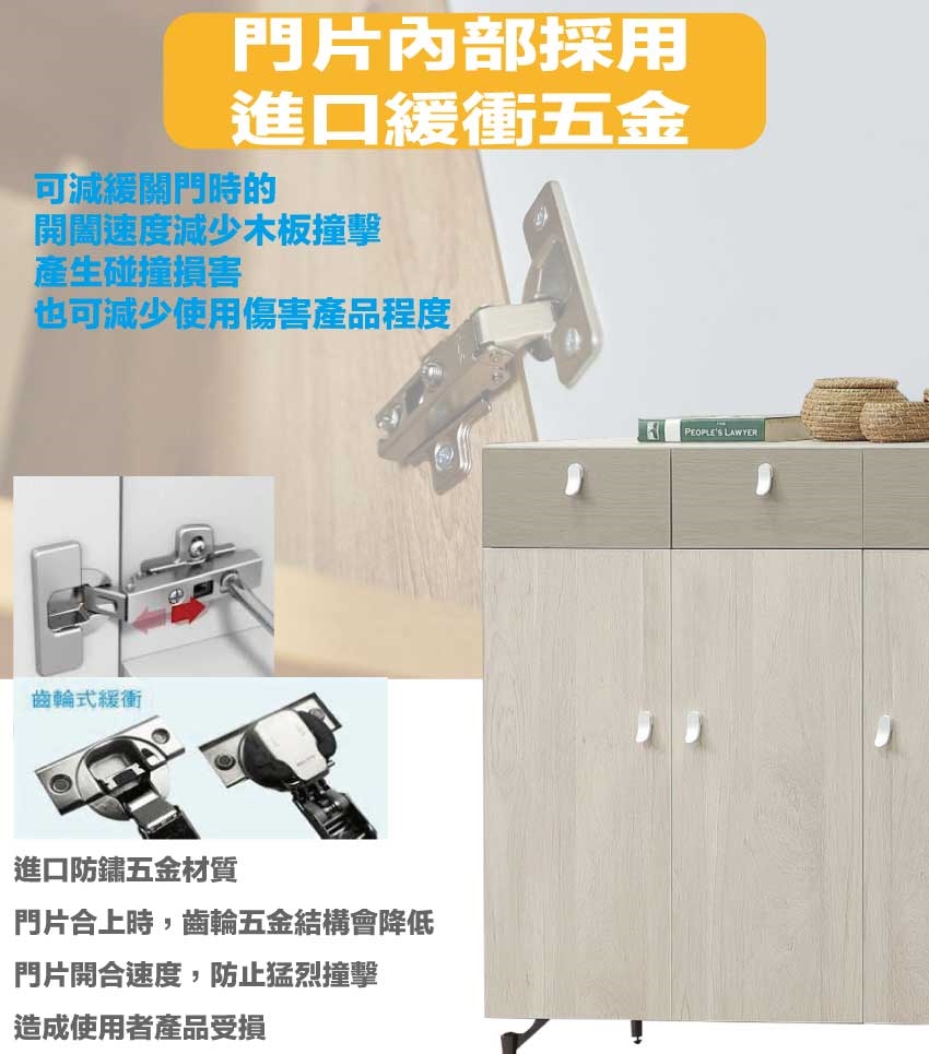 材質:防蛀木心板+防夾手緩衝五金+烤漆五金腳座+五金滑軌結構