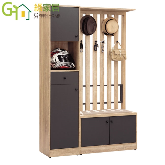【綠家居】麥莉4尺四門單抽高屏風玄關座鞋櫃組合(穿鞋座墊設置) 木紋雙色系+安心材質製造,使用放心+搭配居家更便利,採用防蛀木心板+五金滑軌結構+防刮耐磨底座+防夾手緩衝門片五金等安心材質製造 ,外層採用防潮耐磨噴漆處理搭配採用開門櫃+單抽屜+內&外開放層格+穿鞋座墊設置等收納空間設計,全由專人配送到家,專業安心服務,替你省下更多時間!