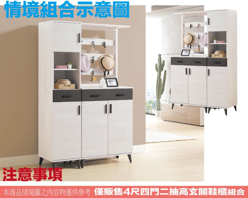 - ◆產品名稱:【綠家居】麥倫4尺四門二抽高屏風玄關鞋櫃組合(左&右二向開門方向可選)