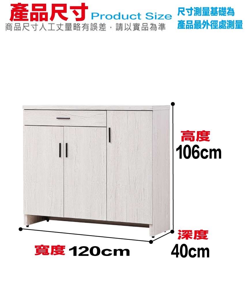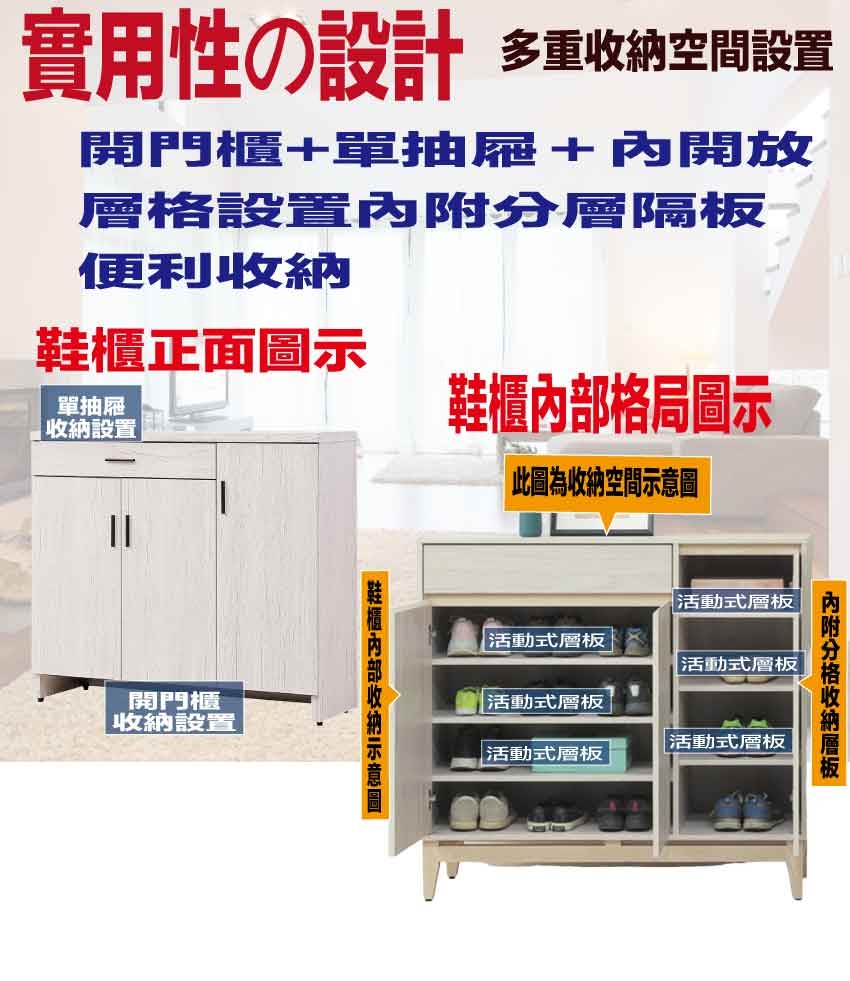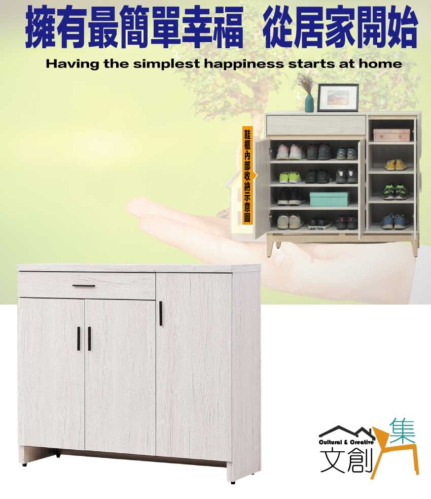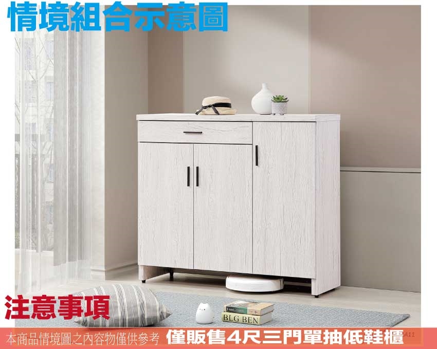 - ◆產品名稱:【綠家居】高格淺橡4尺三門單抽鞋櫃