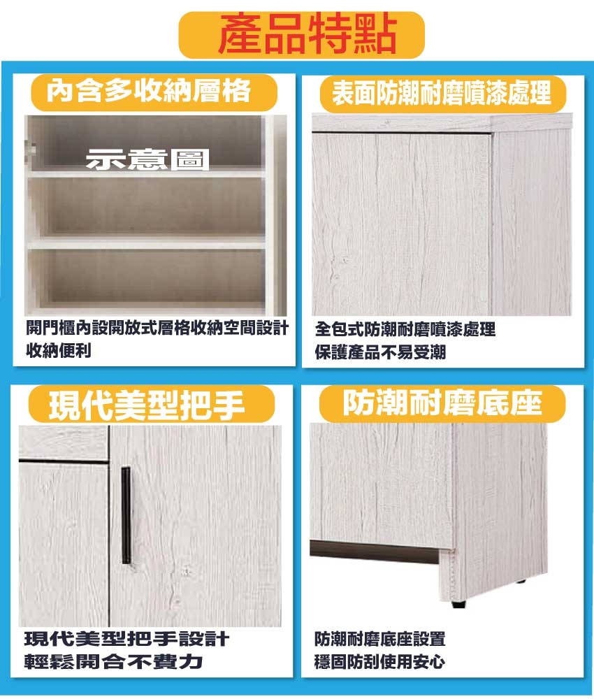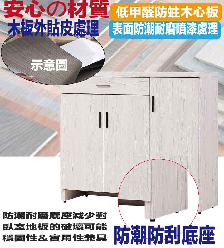 材質:防蛀木心板+防潮耐磨底座+防夾手緩衝門片五金
