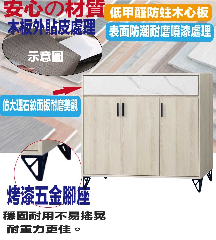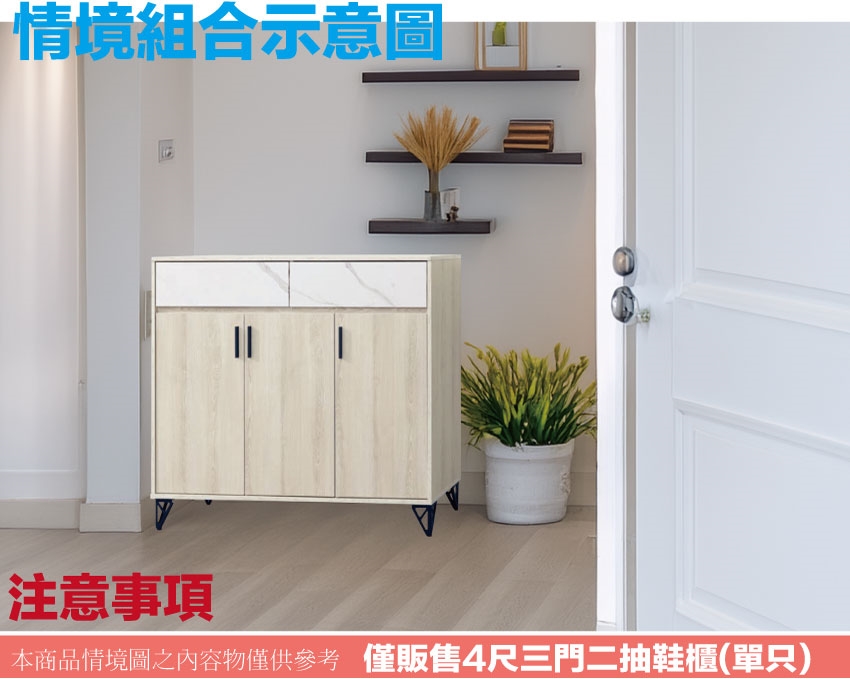 ◆產品名稱:【綠家居】曼聯4尺雙色三門二抽低鞋櫃