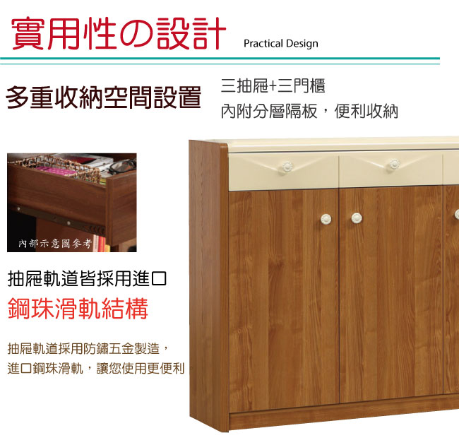 質感木紋雙色+三抽三門收納